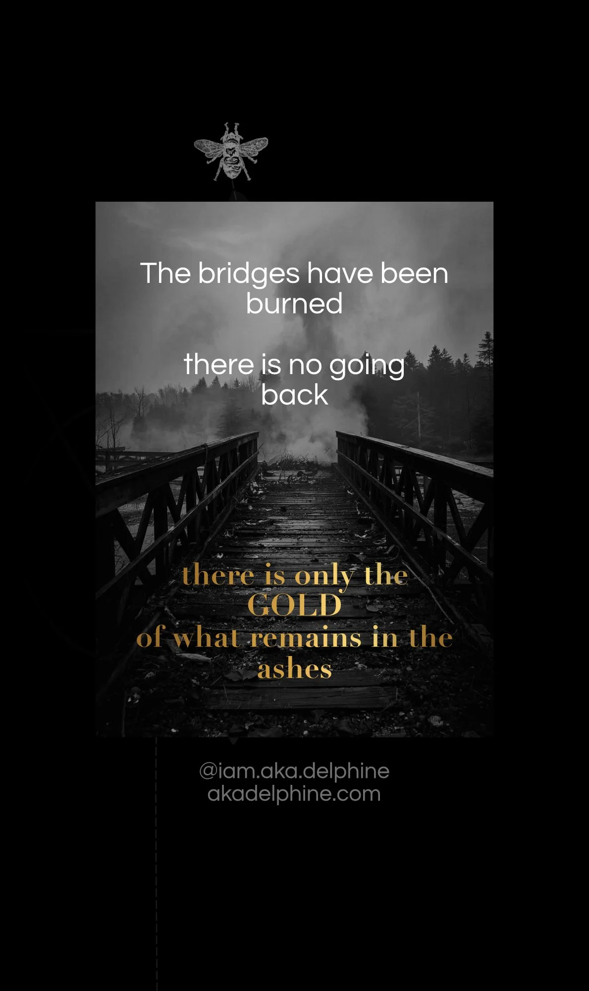 One of the many, many, many gifts in all of this is in having burned those bridges, I now get to see the gold in the ashes, the jewels that were always there that could never be burned away, but that I didn't have the tools, the capacity or the capability of seeing, know that they're there as best you can. Trust the path and keep f*****g going.